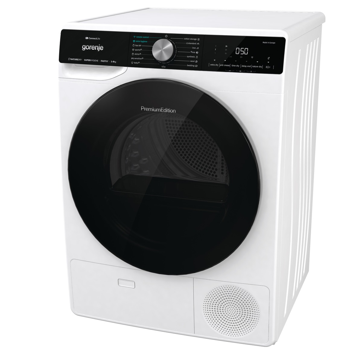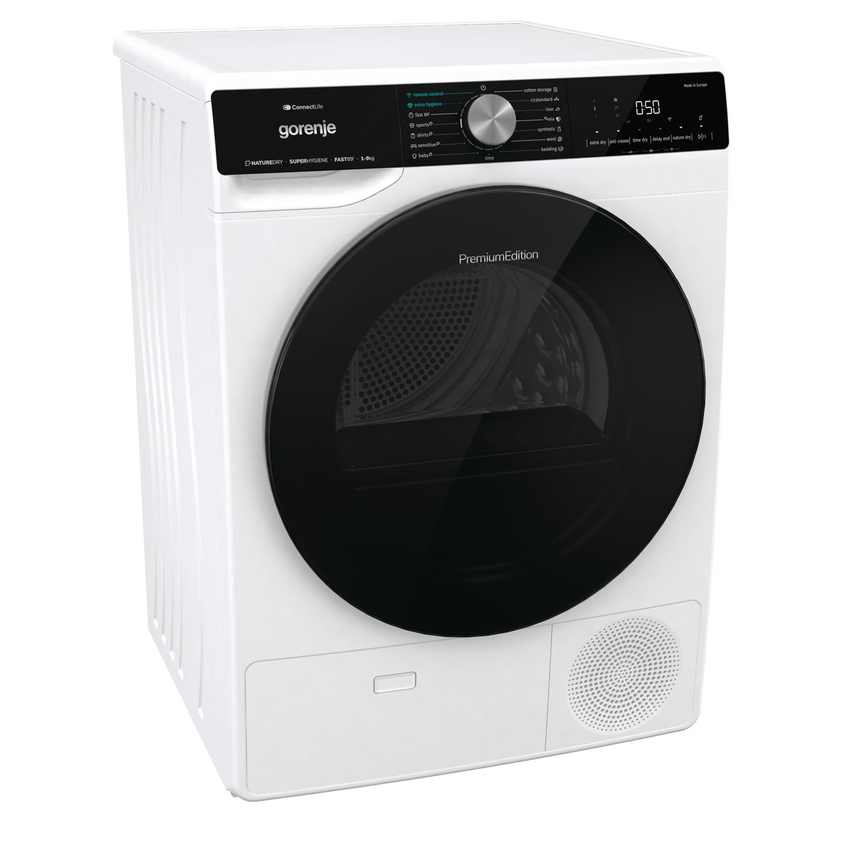 تتميز جميع المجففات ذات المضخات الحرارية بكفاءة عالية في استخدام الطاقة. الطرازات المتطورة مصنفة في فئة الطاقة A+++، مما يوفر 50% من الطاقة مقارنة بتلك الموجودة في فئة الطاقة A. يعد مجفف جورينيه فئة A+++ بسعة 9 كجم فريدًا من نوعه في السوق. يمكن للمضخة الحرارية المُحسّنة الموجودة في واحدة من أكبر البراميل في العالم، بسعة 120 لترًا، التعامل بسهولة مع كميات كبيرة من الغسيل. وهذا ممكن أيضًا بفضل القنوات الجوية الأوسع. كما أنه يجف بلطف أكثر من أنظمة التجفيف التقليدية. درجة الحرارة في المجفف هي 50 درجة مئوية المثالية لمنع الجفاف الزائد.